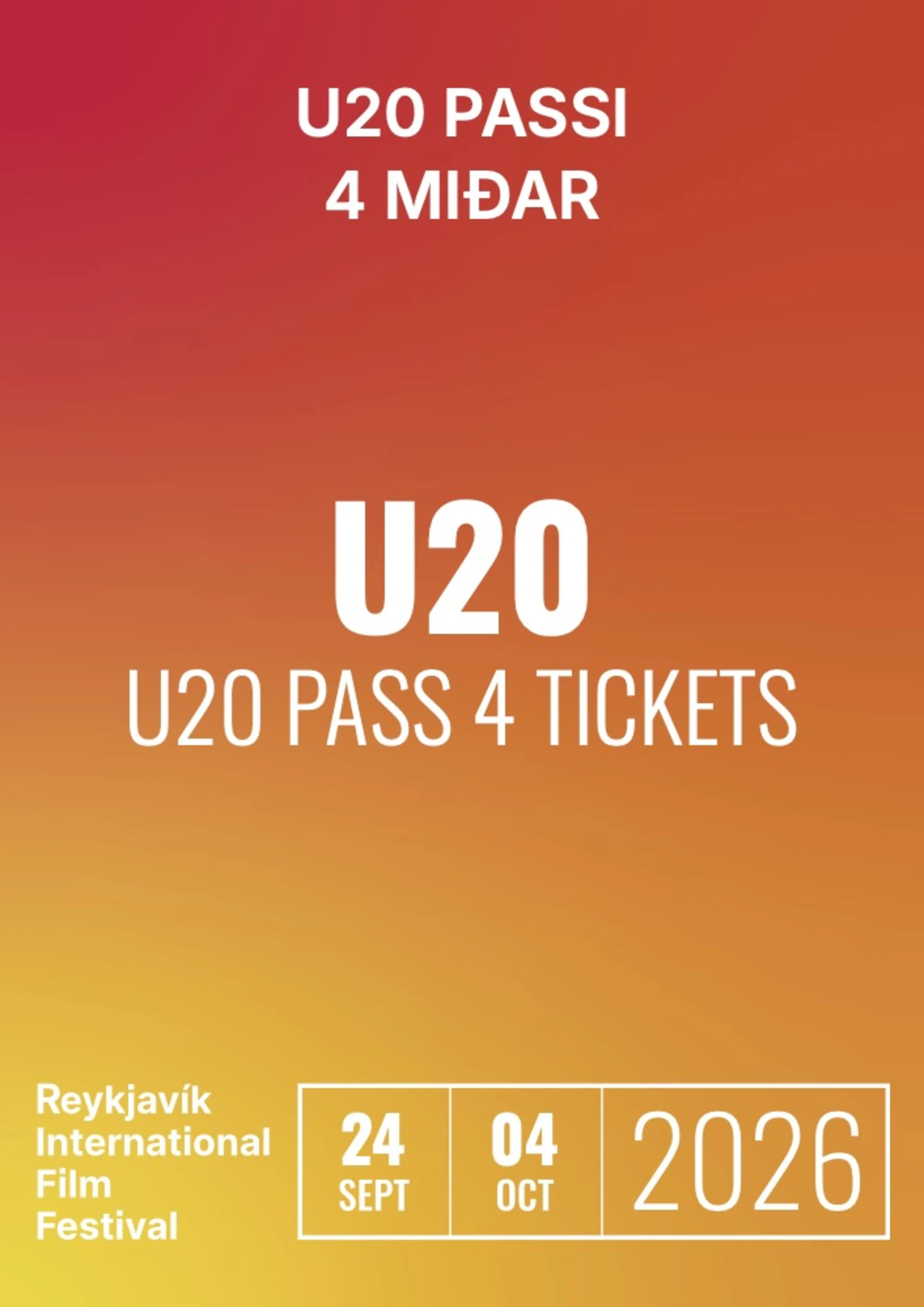 Athugið að allir passarnir og klippikort RIFF eru rafræn. Til að virkja U20 passann þarf passahafi